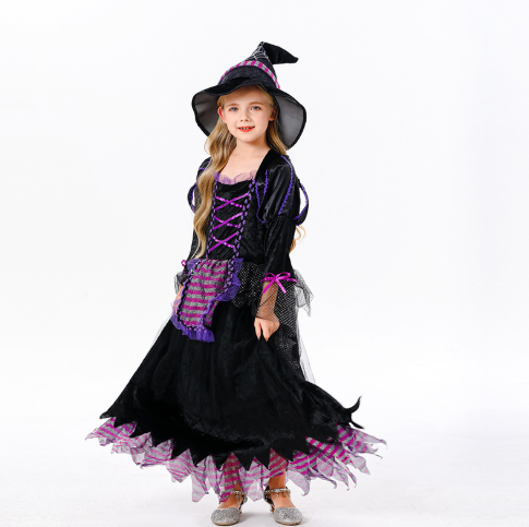 Halloween costume witch dress for children, costumes for girls' parties and stage performances